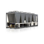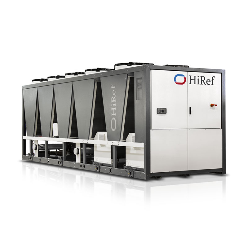 TVXA sets a new standard for air cooled chillers, designed to ensure that processes are both energy-efficient and environment-friendly. Low environmental impact has been achieved by using new HFO refrigerants with low GWP (Global Warming Potential), while higher efficiency/bulk ratios are attained thanks to the special V-configuration of the heat exchange coils and their sizing, the largest among the chillers currently available on the market. The free-cooling version – where heat exchange surface areas are double the market average – ensure outstanding performance. The adoption of screw compressors that are modulated via slide valve or inverter, the use of electronically controlled expansion valves, generously-sized plate heat exchangers, software-managed integrated control of fans and circulation pumps are all key features that give the TVXA range outstanding load modulation capacity and high efficiency at partial loads. The compressor hoods drastically reduce noise thanks to the use of special soundabsorbing materials. Moreover, slide rails allow them to be removed effortlessly, making all maintenance tasks much easier. The compressors can also be removed by hooking from above and lifting with a crane. The unit is designed to achieve energy efficiency class A, in compliance with regulation UNI 14511.